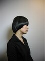 通常かわいらしく創るマッシュルームカットなのですが、逆にクールに創り上げています。モダンな感じは、アシンメトリーなベースと黒髪かもしれませんね!