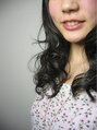 キュートな巻き髪♪重めの前髪ですが、フェイスラインは長さも短く軽さを出し、顔を包み込むような優しい雰囲気に仕上げています。