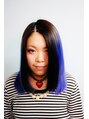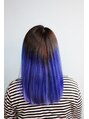 ライブ友達のキヲちゃんです。根元を外して毛先にかけてグラデーションになるようにブリーチをしてMANICPANICのショッキングブルーを全体にいれました。根元の茶色のところも青みをいれて統一感をだしました。