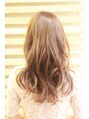 キャラメル色のまろやかなツヤ感のあるミルキーカラーとデジタルパーマの柔らかなカール感が、大人スウィートな魅力を感じさせるスタイル。