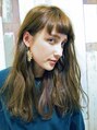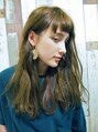 ロングのくせ毛風重めスタイルに透けるようなカラーで柔らかさと、ショートバングと耳にかけるスタイリングでぬけ感を作れば外国人風スタイルでおしゃれに!決めすぎずラフに。。。な気分!