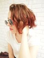 外国人風の柔らかなクセ感に毛先にスパイシーレッドを入れ少しだけ個性を★決めすぎず少しバサッとしたラフな動きとスパイシーレッドの組み合わせが新鮮で春~夏にかけてオススメです☆決めすぎず耳かけボブでこなれた感じがお洒落です!!