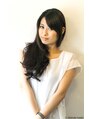 胸下のロングスタイルを、鎖骨の位置あたりからくせ毛のようなほつれ質感のウェーブを施し躍動感を。黒髪でも重たくならないことを意識しました。