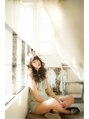 少しダークなヌーディ―カラー! 無造作でくせ毛風なほつれウェーブがヘルシーで大人かわいい☆厚めバングな斜めバングが目力を強くし、他の子と差をつけます。パーマは、質感の良い生ウエーブ☆