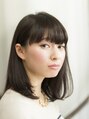 厚めバングがかわいいい、自分らしさが出せるスタイルです。カラーは、黒髪を少し明るくしたアッシュブラウンです。伸ばしかけの方にもオススメです。アレンジも楽しめます。