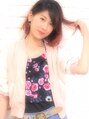 毛先にピンクレッドを入れたグラデーションカラー!耳かけボブでモードさを演出♪個性派さんもおしゃれに決まる!表面のハイライトもワンポイントに!