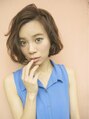 アゴラインのボブにボトムは毛先内巻き、表面はミックスパーマで動きを出したウェービーヘア!ルミエールカラーで透明感をプラスして。伸ばしかけでもかわいくキマル万能スタイルです。