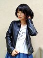 ほんのり段を入れた肩上の長さのボブスタイルに、頭の形に合わせたやわらかいウェーブをつけます。