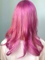 オーストラリアから来てくれたKateさんです!美人で聴き取りやすい英語を話してくれました!元々 色素が薄い状態からブリーチをしたままでご来店してので 上からパープルを9:1で薄めてパステルパープルにしました!