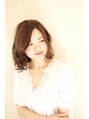 肩ラインのミディアムスタイル。自然なうねりとハネ感が可愛いレイヤースタイルです。縦長シルエット+前上がりで、季節感も◎