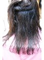 ダメージ毛(月1毛先まで、ホームカラー+半年前に縮毛矯正)の施術です。けっこうシビアな環境ですが、場合によってはパーマ出来ます。ケースによりになりすので、お電話、メール等ではお答えできませんが、なんとかなる場合もありますよ。
