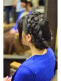 ほんのり桜色のチークにアイシャドウはポップなカラーで遊び、クラシカルなヘアとのMIXを楽しむパーティーヘア♪大きめに造った編みこみと、柔らかさを強調するカチューシャを高い位置でつければ可愛さもアップ☆一見アンバランスなスタイルでも計算すれば◎