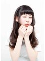 くりっとした目をよりキュートに前髪をつくり、丸顔のかわいさをより強調させ優しい印象をワンカール毛先にカールさせたガーリースタイルです。髪色とわずすこし個性を出したい方におすすめです。毛先はパーまでも良しコテで巻いても良しです!