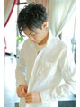 サイドと襟足は短くツーブロックでカット、トップは長さを残してパーマで立ち上がりと動きが出るように!!スタイリングでラフな感じもきっちりオールバック風でもイメージが変えれますよ♪