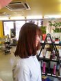 シンプルなミディアムスタイル。表面に入れたレイヤーがふんわり柔らかいテイストを出す、隠しポイント!!毛先にワンカールパーマをかけて、スタイリングも簡単です。