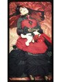 ダブルカラーで、ヌーディーピンクと深みのあるレッドをオン!そこに目の上ぎりぎりを狙ったドーリーバングで、モード感も合わせたスタイルにしました!