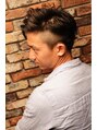 サイドをツーブロックに、バックも短く刈り上げ、全体にニュアンスパーマをかけて七三、無造作に動きをつけます!オールバックにかきあげワイルドに!ビジネスシーンでも好感度アップ!束感ショート、マッシュ、トラッドなんでもご相談下さい!アシンメトリー