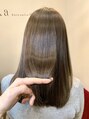 柔らかいアッシュブラウン系のカラーはこれから夏に向かっての柔らかさをだしています。バンクを薄めにカットして愛され度100%UP☆ 【恵比寿白髪染めハイライトインナーカラートリートメント髪質改善】