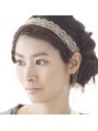 顔周りを編み込んでレースを巻き付けて少女っぽさもある大人かわいいセットです。ガーデンパーティーなどにおすすめです。