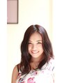 巻きすぎない。ナチュラルなラフな感じに。カラーは、暗めのヌーディーイエローオレンジ。ほつれウェーブが決めて。センターパートでも大人かわいいロングスタイルです。伸ばしかけの方たちに人気のある、おすすめスタイルです。愛されロング。