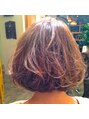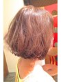 ショートスタイルから伸ばしかけの方にオススメのスタイルです☆ふんわりと巻いたパーマによりクセ毛風の無造作ボブで簡単スタイリング。カラーは柔らかさと透け感の出るヌーディーベージュ♪