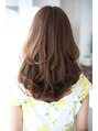 毛先に厚みを残し重めにつくるとまとまりやすいスタイルにお顔周りにレイヤーをいれてカットし毛先にパーマをかけ柔らかい印象に。