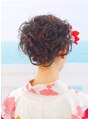 ショートボブでしたので襟足が上がりきるところで結んで付け毛を付けて仕上げました!飾りがキラキラ揺れてとっても素敵でした♪レイジースワンのレンタル浴衣です☆彡
