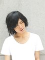 サイドの内側をツーブロックに刈上げ、無造作感のあるニュアンスパーマをかけて雰囲気をだすミディアムヘア。