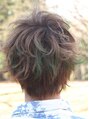 ランダムに平巻き、逆巻きを1.5~2回転巻く。そうすることでエアリー感や色気を演出。 カラーは、毛先になるにつれて明るくなるようグラデーションカラーを入れ、その後に、毛先中心にポイントでグリーンをON。12トーンの アッシュベージュをかぶせて完了。