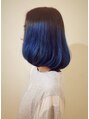 根本ダークアッシュからブルーにしたグラデーションカラー☆根本を黒ではなくグレイ系にトーンダウンした事により重た過ぎない印象に♪
