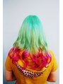 ゆこびんさんです。全体をブリーチしてマニパニのエンチャンティッドフォレストを10%にうすめてサイドワンポイントと毛先にピンクをいれました。グリーンをここまでうすめにいれたのは初めてでしたが綺麗なミント色になりました。