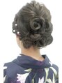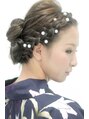 前髪からバックにむかってゆるい編みこみをします。トップはボリュームをだして、後ろの髪を少しづつ束でとって、渦にしてまとめました。