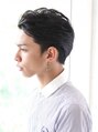 ワイルドにオールバックに髪を流したキレイめスタイル。ビッチリおさえず、空気感をつくりながら流す事で強く見えすぎないようにしました。くせがある人でも決まりやすい簡単できっちりキマるおすすめスタイルです