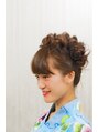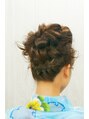 トップにクルッとコロンとまとめてあげた可愛いスタイル。サイド、バックはスッキリと仕上げてあるので、女の子らしさもアップです!!