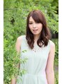 カラーは8トーンのベージュブラウンで、ふんわりと柔らかい質感を出しました。カットは前上がりベースで、トップとミドルにレイヤーを入れます。前髪は目上のラインで重めにラウンドにカット。モデルの雰囲気に合わせて、フェミニンな感じに仕上げました。