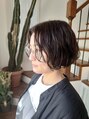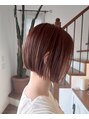 リップラインベースのウェーブです。前髪に少し動きを持たせて軽やかにしています。カラーはナッツブラウンに赤紫を少し混ぜて。インナーカラーのピンクパープルをアクセントで加えています。