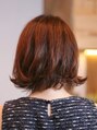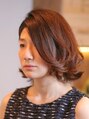ややサイドパート気味で作るボブは毛先のカール感とハネ感が大人っぽさにやわらかさをだすスタイルです
