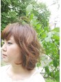 ショートボブをベースにトップからエアウェーブでボリュームをだし10トーンオレンジ系カラーにローライトで立体感が出るように仕上げています