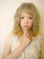 ドーリッシュカラーでホワイトベージュにしました。前髪と毛先はアクセサリーカラーでオレンジを入れて夏っぽく☆