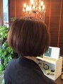60代ミセスの方。毛髪が細くなって、今までなかったもわもわしたクセが白髪とともに出てきました。そんな方にも安心な重めボブ。手ぐしでブローで簡単スタイリング出来ます!
