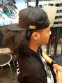 サイド刈り上げて、アフロツイストでボリュームが出るスタイルにしました♪三つ編みにはせずに、そのままほぐしたので軽いです!キャップを脱いだときは、上で縛れるようにしてます♪