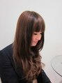顔周りを大胆にパッツンカットで姫風に。そこにガツンとローライトを入れて個性的に☆全体アッシュ系の色でツヤと軽さをだしました。重ためスタイルが好きな方にオススメです☆