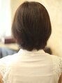 女性らしい丸さがあるひし形フォルム。襟足やサイドの長さはバランスを見ながら自分らしさを見つけましょう!耳かけで簡単スタイリングも。顔周りの似合わせカットで小顔、誰もが似合う可愛い無造作感の大人ボブが◎黒髪で美髪スタイルに!!