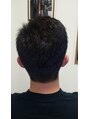 トップはクセの具合に合わせてギリギリ立たない短さ。理想のシルエットになるようサイド・バックを刈り上げ。夏仕様でかなりの毛量調整。