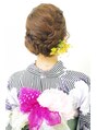 浴衣に合うあみこみをアレンジしたアップです。前髪をあげてすっきりと。