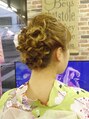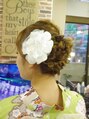 おくれ毛はあまり出したくないとのことでしたので、すっきりと編み込みでまとめました♪トップはふんわりルーズ感を出しました★