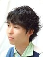 右側をツーブロックにし、アシンメトリーにしたパーマスタイル。リッジ感がしっかり出ます。どんな髪色にも、どんな人にも合う髪型です。