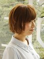 カット*アゴラインのショートボブ。やわらかい質感が出るようにカットしていきます カラー*10レベルのアプリコットブラウン パーマ *直毛の方や動きの出にくい方は毛先にゆるくかけることをおすすめします。