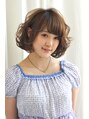 眉が見え隠れするくらいの長さの前髪でかわいさ表現しました。アゴラインのボブに根元から大きく動く様にホットパーマをかけてフワッとした質感に☆耳にかけていただいても楽しめます!