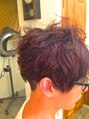 前髪だけナチュラルなストレートにして、クセ毛を生かしたショートスタイル。襟足は刈り上げてスッキリ☆直毛の人は軽くパーマをかけてあげると◎前髪を9:1くらい極端に分けるのがポイントです♪